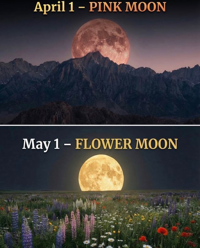 Në pranverë, qielli i natës do të ndriçohet nga dy Hëna të plota me emra simbolikë: Hëna Rozë në prill dhe Hëna e Luleve në maj. Edhe pse emrat duken interesantë, Hëna nuk bëhet në të vërtetë rozë apo me ngjyra të tjera.